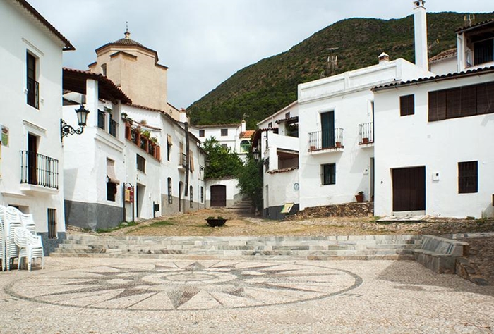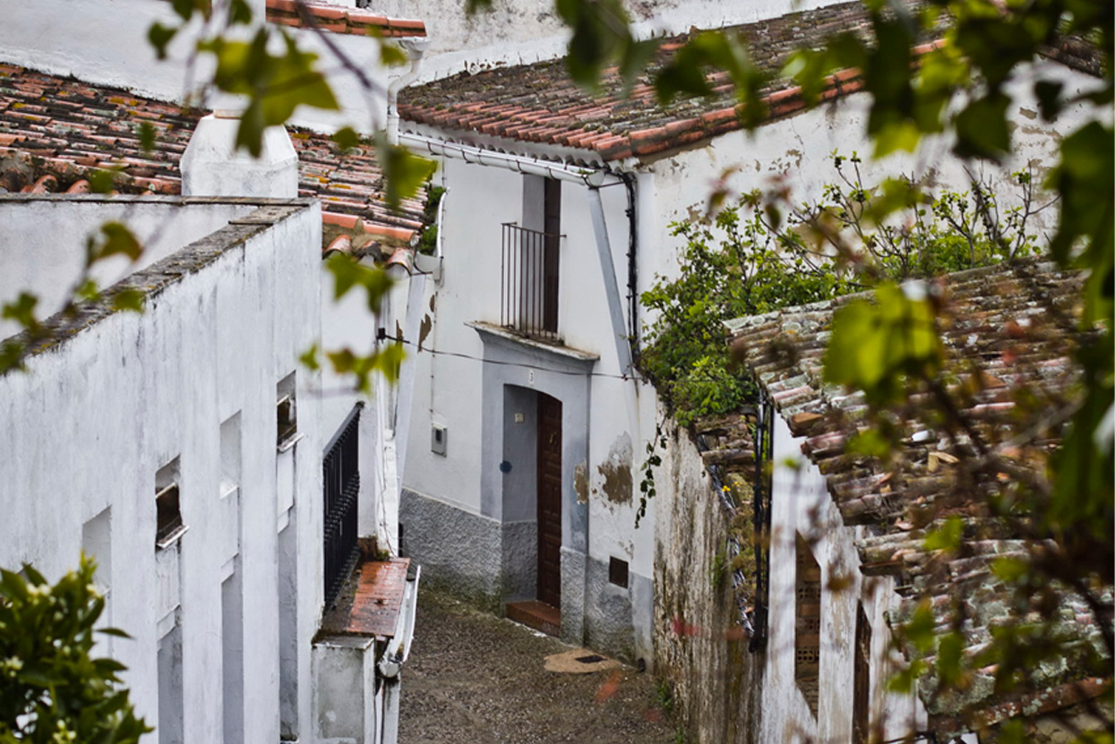 El Caserí­o, declarado Conjunto Histórico-Artí­stico, es un conjunto de casas de tipo popular recogido y tranquilo, de calles estrechas, perfectamente integrado en el paisaje y presidido por la iglesia con su tí­pica torre, que se encuentra al pie de la Peña de Arias Montano (declarada Bien de Interés Cultural), llamada así­ porque fue lugar de retiro y meditación de Benito Arias Montano, teólogo erudito y asesor del rey Felipe II, y uno de los intelectuales más influyentes de su epoca. Desde la peña se divisa una panorámica inolvidable.