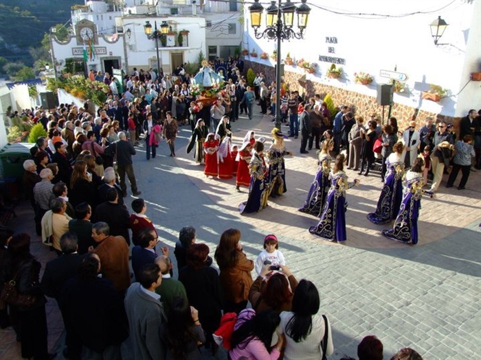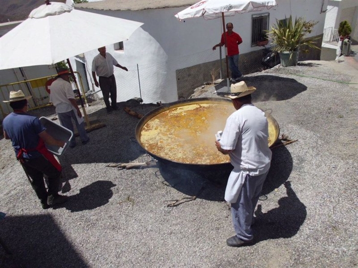 Pueblo situado en la solana de la Sierra de los Filabres, formado por un grupo de casas blancas con tejados de pizarra y escalonadas entre olivos y almendros.